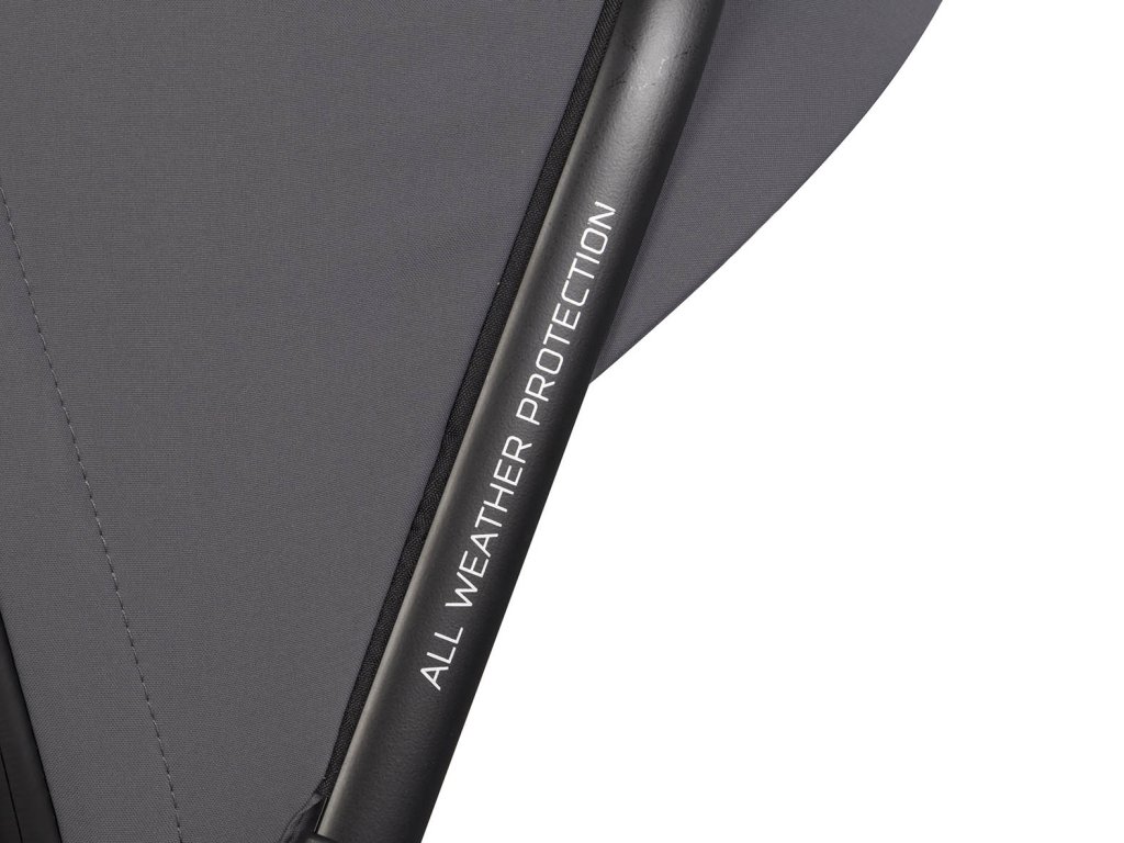 - Povrchová úprava: Impregnovaná tkanina s UV ochranou, odolná vůči nečistotám a vodě.