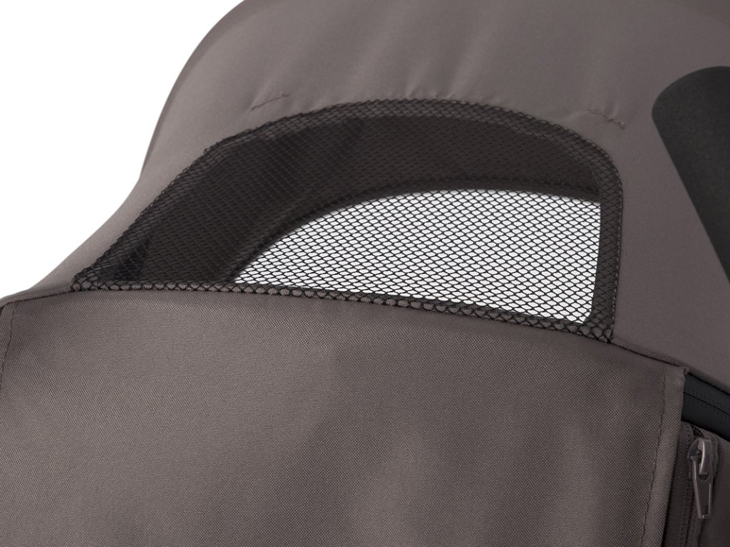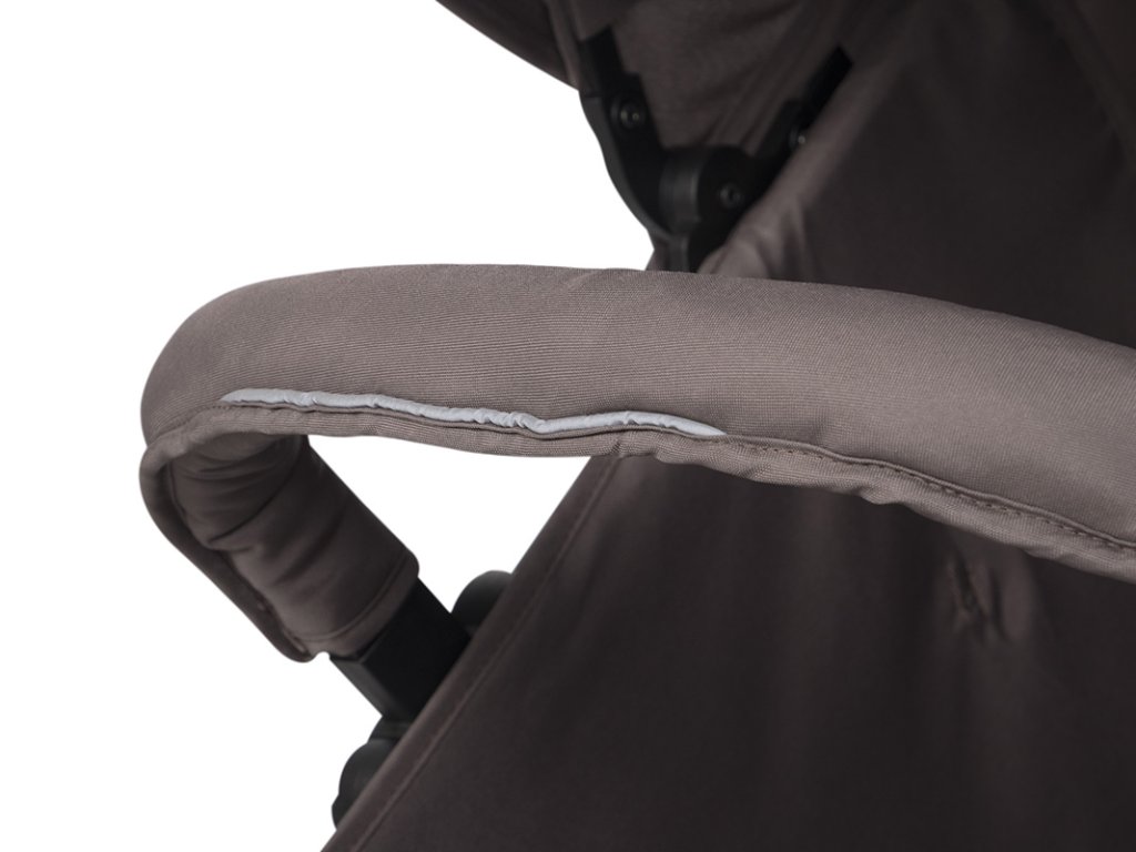 - Pohodlné sedátko: Měkké sedátko je napnuté na rámu kočárku, což zvyšuje komfort a eliminuje tvrdé plochy.