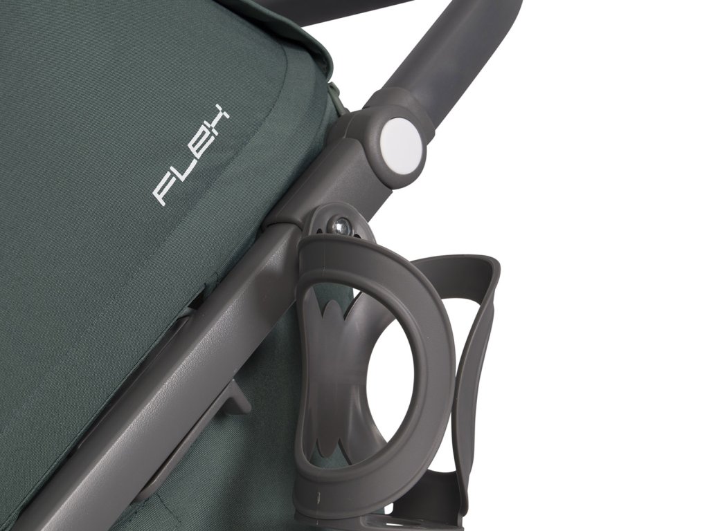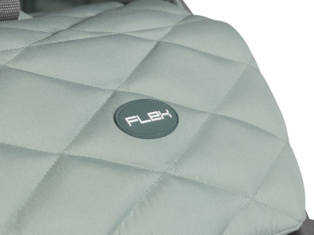 - Velké sezení: Kočárek Flex má prostorné sezení, které je dostatečně velké na to, aby vydrželo až do konce období používání kočárku. Maximální nosnost je 26,5 kg, což zahrnuje váhu dítěte do 22 kg, zatížení košíku do 3 kg a tašky na rukojeti do 1,5 kg.