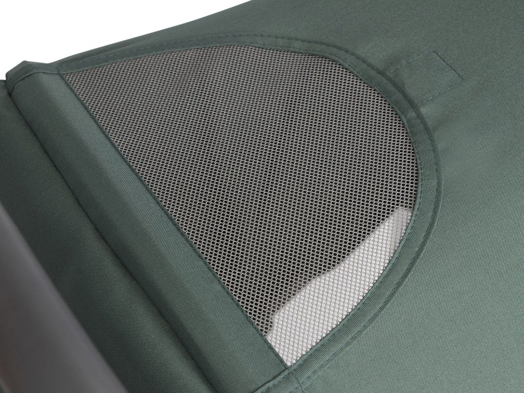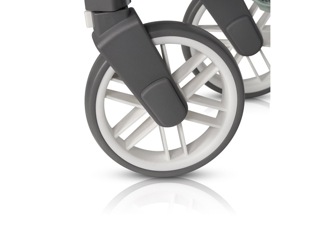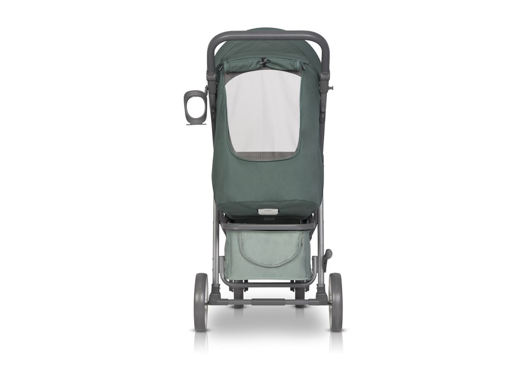 - Slunce a ventilace: Sluneční stříška s přídavnou sekcí a tichým mechanismem regulace poskytuje ochranu před sluncem a větrem. Zadní část kočárku obsahuje velký ventilační panel na zip a praktickou kapsu na drobnosti.