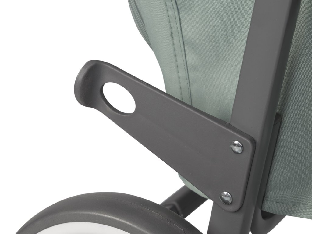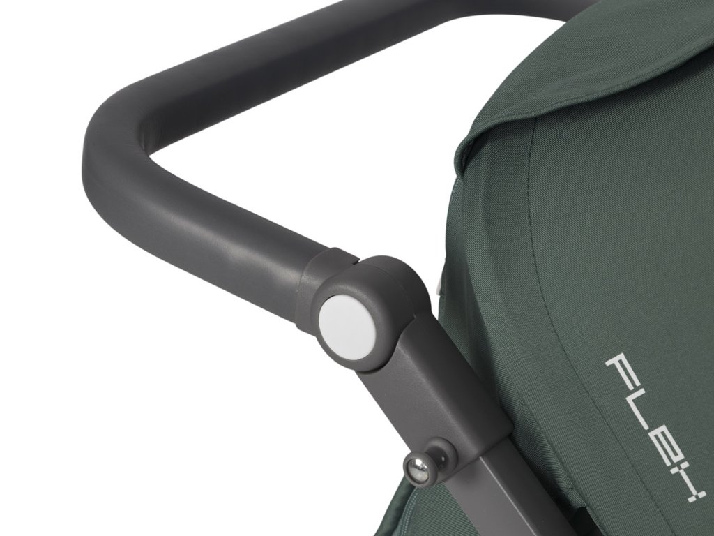 - Pohodlné ovládání: Regulovatelná výška rukojeti umožňuje pohodlné ovládání pro rodiče různých výšek. Snížení rukojeti je užitečné při překonávání obrubníků.