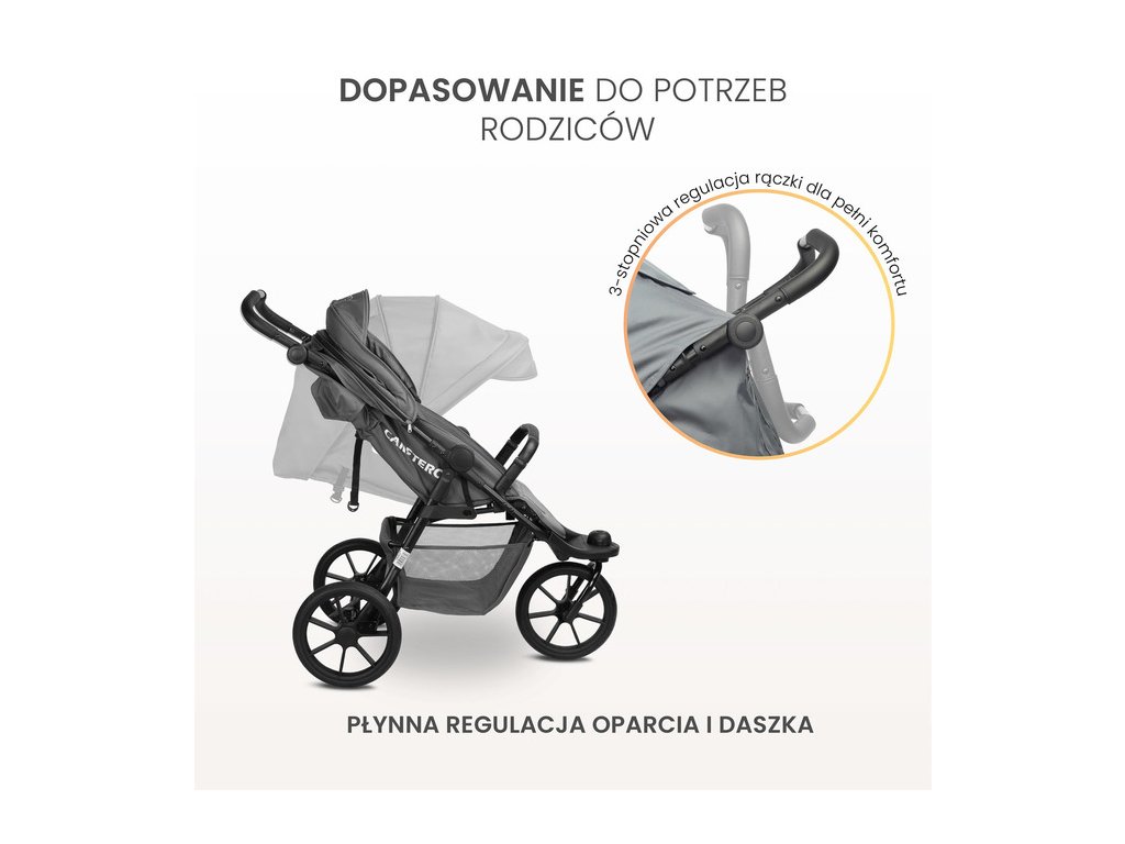 ODPOVĚDÁNÍ POTŘEBÁM RODIČŮPlynulé nastavení sklonu opěradla umožňuje přizpůsobení potřebám dítěte. Navíc, 3-stupňové nastavení rukojeti zajišťuje pohodlí pro rodiče při jízdě s kočárkem. |