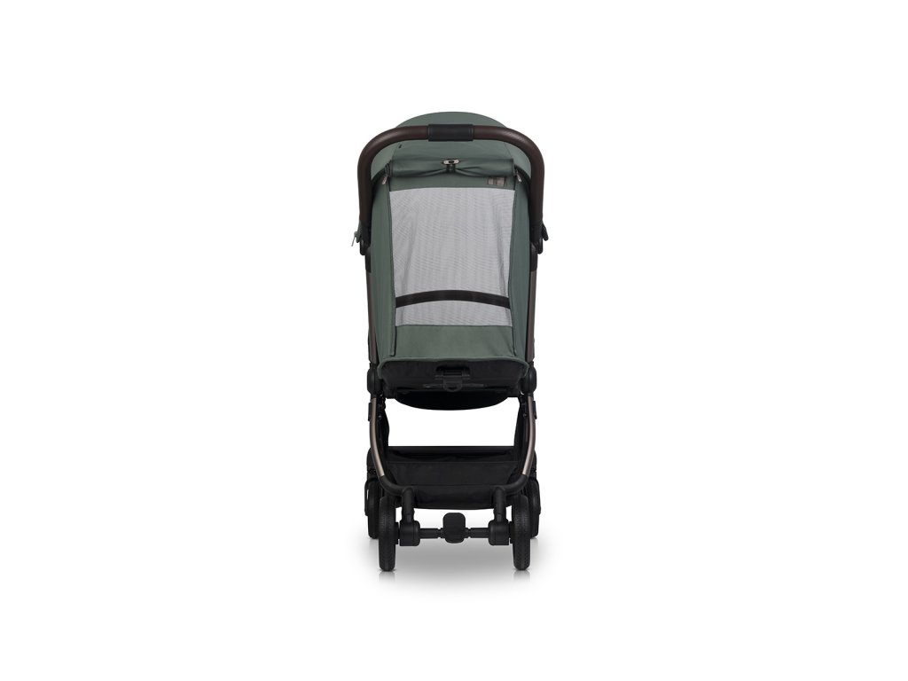 Díky správnému vyvážení rámu se kočárek snadno naklápí na zadní kola, což oceníte například při najetí na obrubník. Široký rozchod předních kol zajišťuje vyšší manévrovatelnost, takže se s kočárkem snadno pohybujete i v úzkých prostorách obchodů či kaváren.