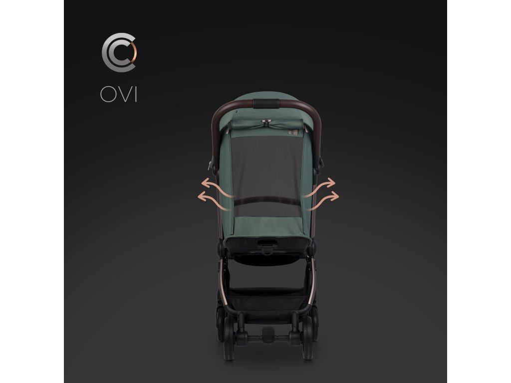 Stříška kočárku CAVOE OVI má dodatečnou rozepínací sekci a sluneční štítek. Díky možnosti zvětšení stříšky ji můžete naklonit dopředu a chránit tak dítě před nízko svítícím sluncem, což oceníte zejména při večerních procházkách nebo při jízdě proti slunci.