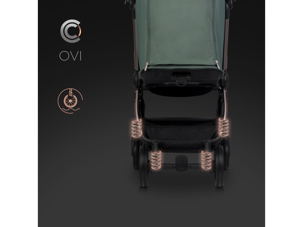 Navzdory nízké hmotnosti jen 8 kg a kompaktním rozměrem je kočárek OVI mimořádně pohodlný pro dítě i osobu, která jej vede. Komfort zajišťují gelová kola s celoročním běhounem a odpružení všech kol, které zmírňují otřesy při jízdě po nerovném povrchu.