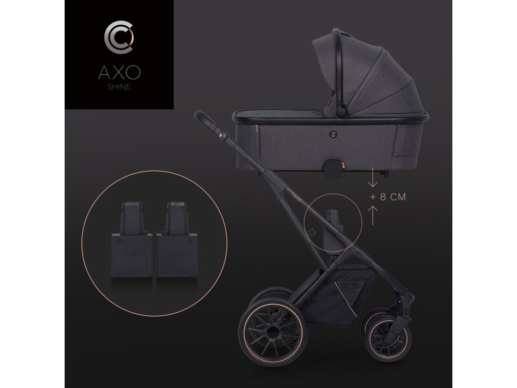 Prémiová hluboká vanička od značky CAVOE představuje dokonalou kombinaci nejvyšší kvality, moderního designu a výjimečná funkčnost. Model AXO SHINE je nejnovější verzí mimořádně oblíbeného kočárku AXO, která zaujme jemnou pastelovou barevností a luxusními detaily inspirovanými pařížskými módními trendy.