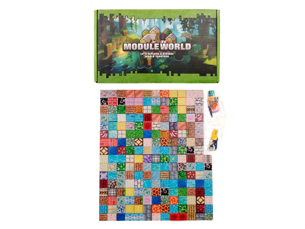 Balení obsahuje také pevnou úložnou krabici s motivem herního lesa, která usnadňuje ukládání a přenášení stavebnice. Modulární systém umožňuje nekonečné kombinace – ať už stavíte svět pod vodou, v horách nebo v jeskyních.