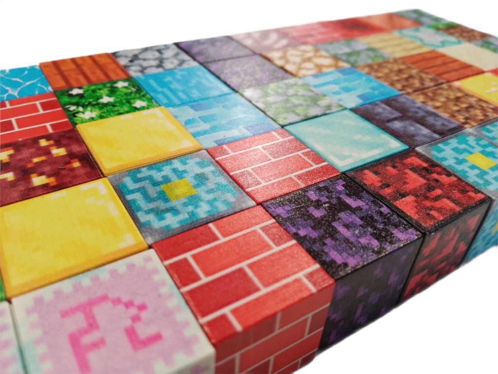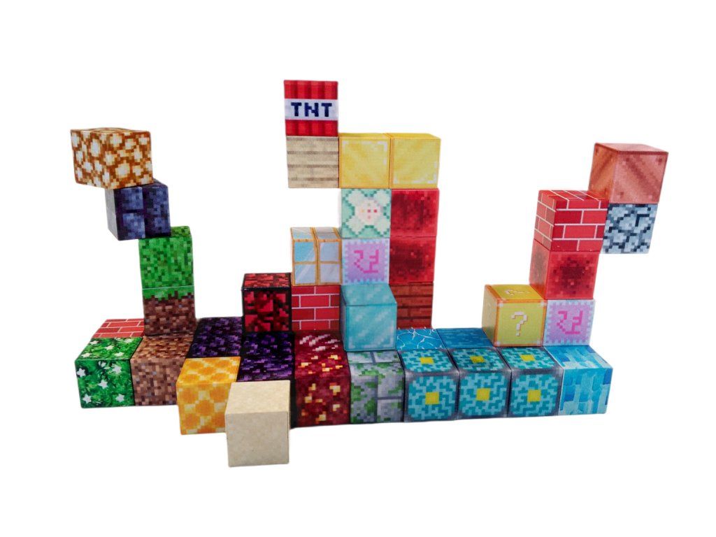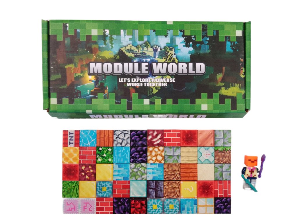 Kostičky jsou vyrobeny z plastu a obsahují bezpečné magnety, které zajišťují jednoduché a stabilní spojování. Povrchy zdobí realistické textury herních materiálů – například TNT, trávník, diamantový blok, cihly, voda nebo zlato. Děti si tak mohou vytvářet vlastní světy, stavby a scény podle své fantazie. Součástí sady je i akční figurka připomínající postavu ze hry, vybavená mečem a sekerou. Díky tomu mohou děti rozvíjet nejen stavební, ale i herní scénáře a ponořit se do tvořivého hraní plného napětí a fantazie.