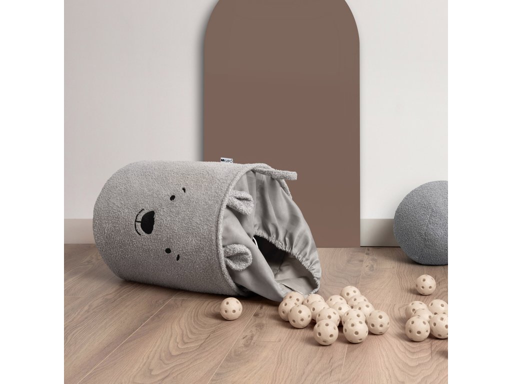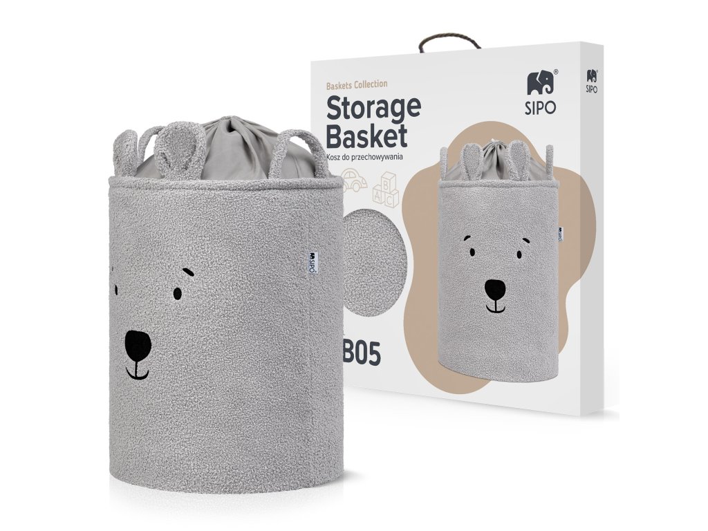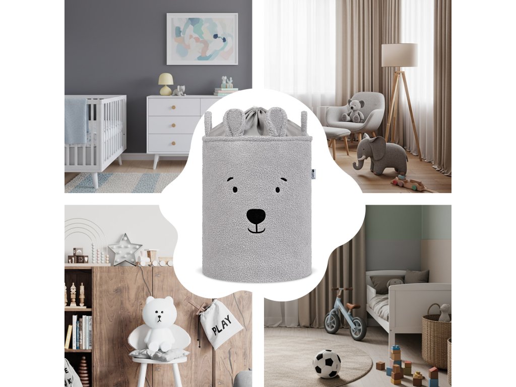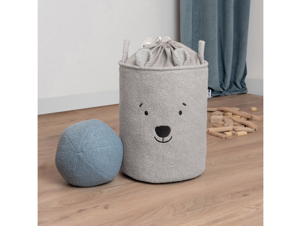 Sipo Koš na hračky Premium Bouclé se šňůrkou / 43 l, Bear (Grey)