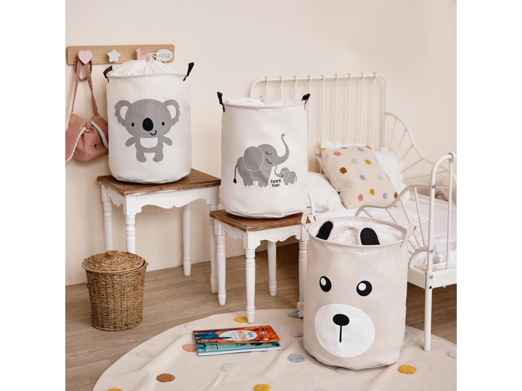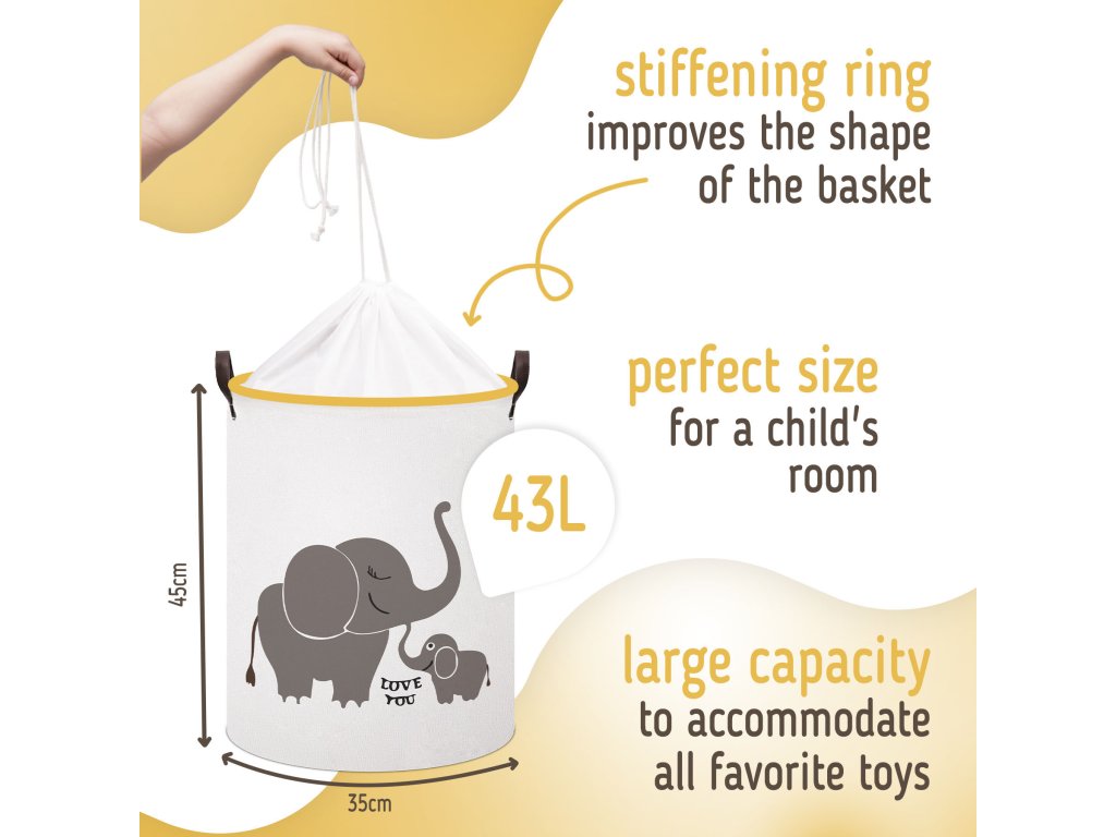 Sipo Koš na hračky se šňůrkou, skládací bavlněný / 43 l, Elephants