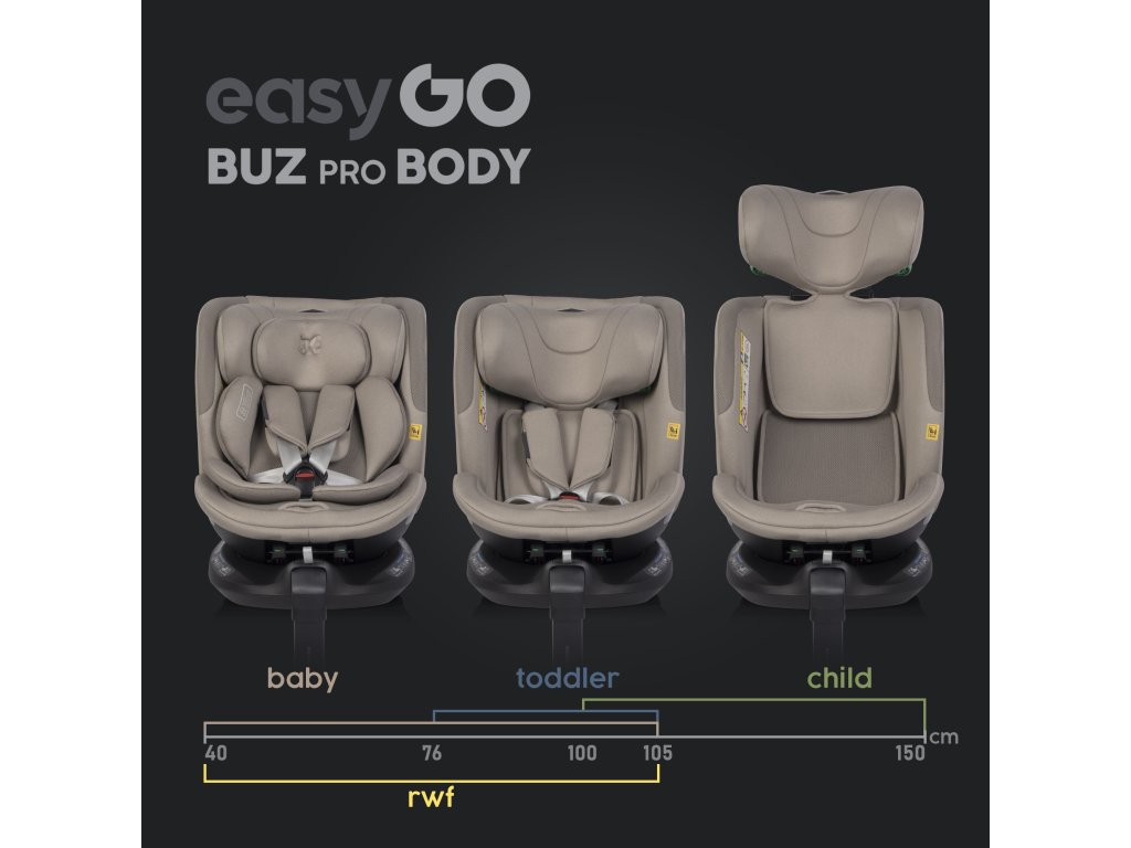 Vyberte si sadu autosedaček EasyGo Buz Pro a Buz Pro Body, která kombinuje bezpečnost, komfort a styl pro vaše nejmenší.