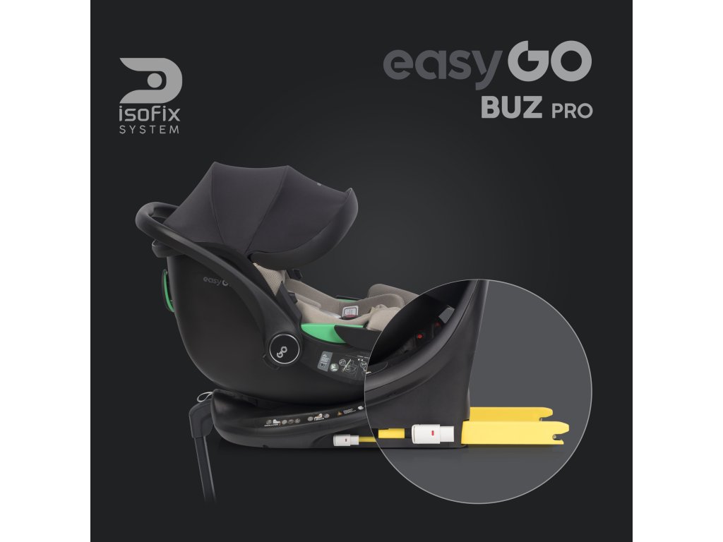 Kompatibilita s kočárky: Autosedačka EasyGo Buz Pro může být snadno připevněna na kočárky značky EasyGo pomocí speciálních adaptérů.