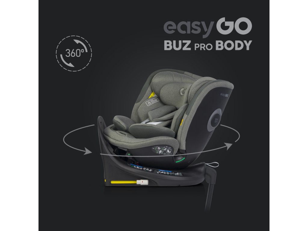 Když vaše dítě vyroste z autosedačky Buz Xtd Pro, je čas na přechod na EasyGo Buz Pro Body, která je určena pro děti od 40 cm až do 150 cm výšky. Tato sedačka se montuje na stejnou otočnou ISOFIX bázi, kterou jste používali s první sedačkou.