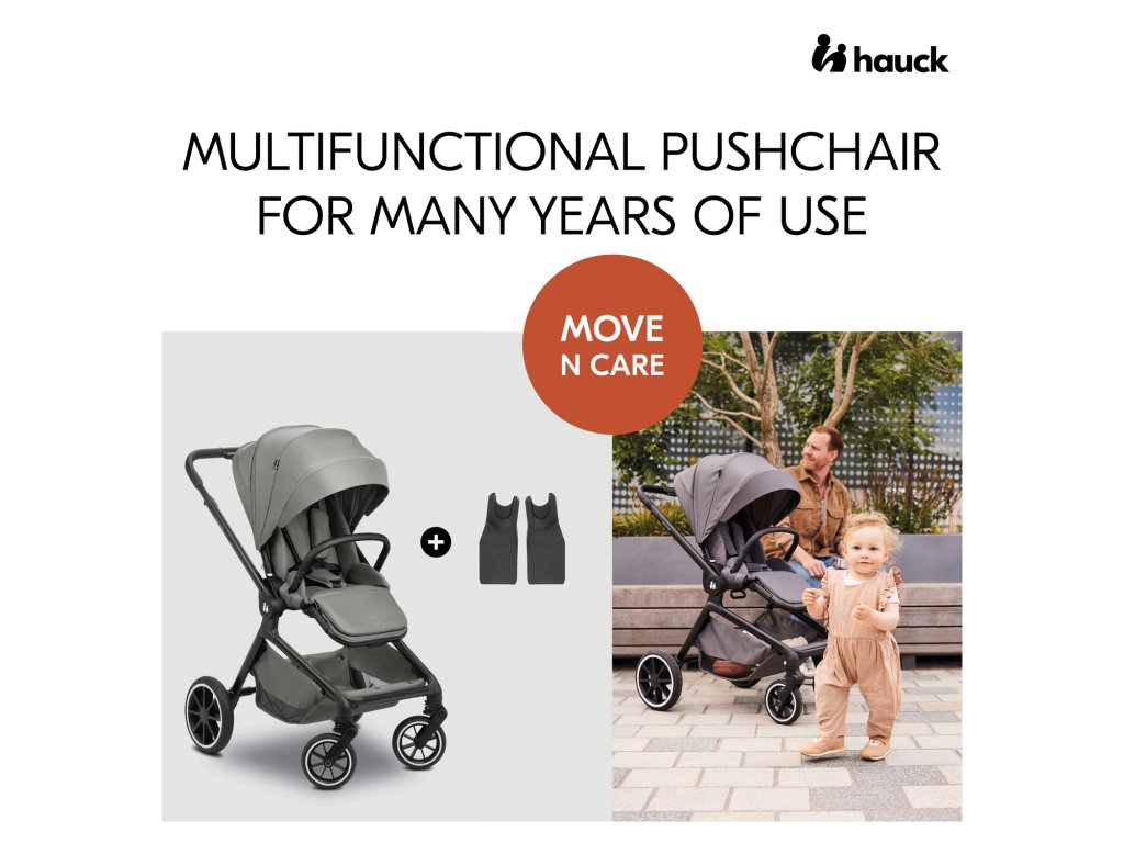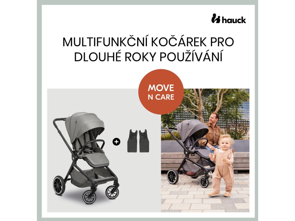 Kočárek hauck Move N Care je vhodný pro děti od narození až po batolecí věk (pro děti do 22 kg). Kočárek můžete používat buď se sportovním otočným sedátkem, díky kterému se vaše maličké může dívat na vás nebo prozkoumávat okolí, nebo s cestovním systémem s autosedačkou (univerzální adaptér je součástí balení).