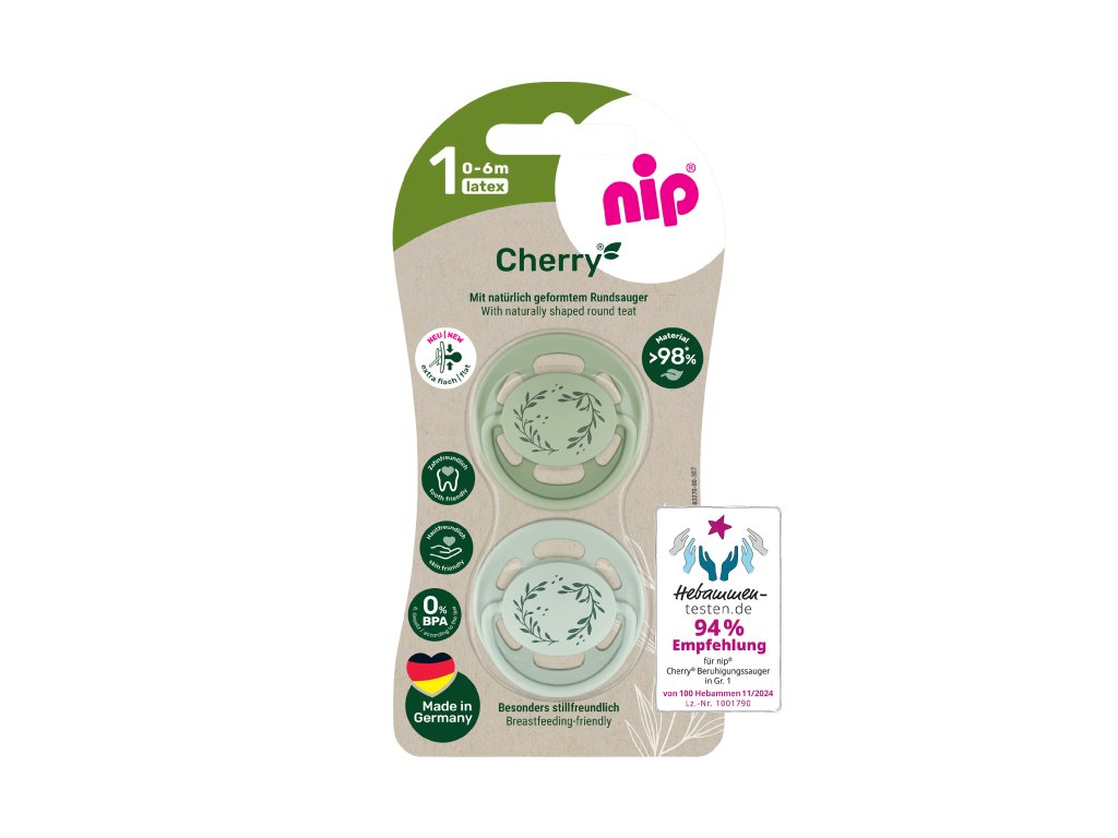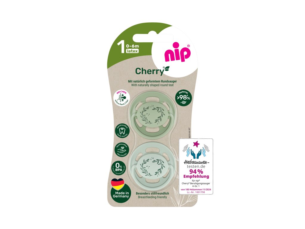NIP CHERRY NATURE line šidítko, kaučuk,velikost 1 (0-6m), 2ks, green/green