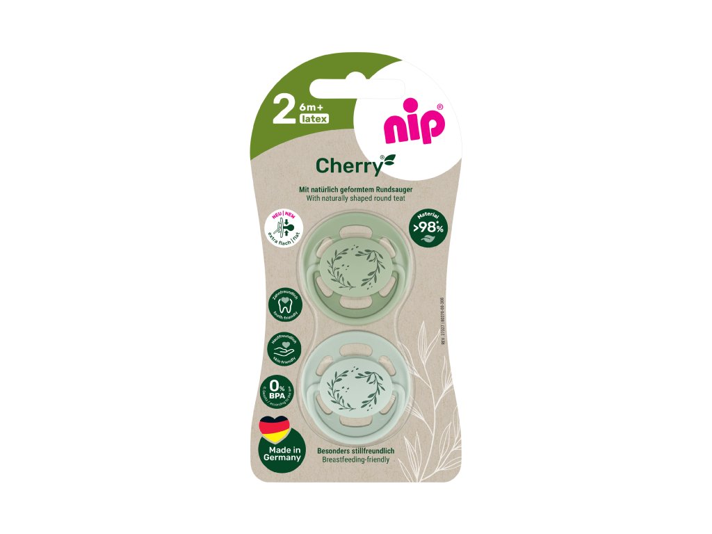 NIP CHERRY NATURE line šidítko, kaučuk,velikost 2 (6m+), 2ks, green/green