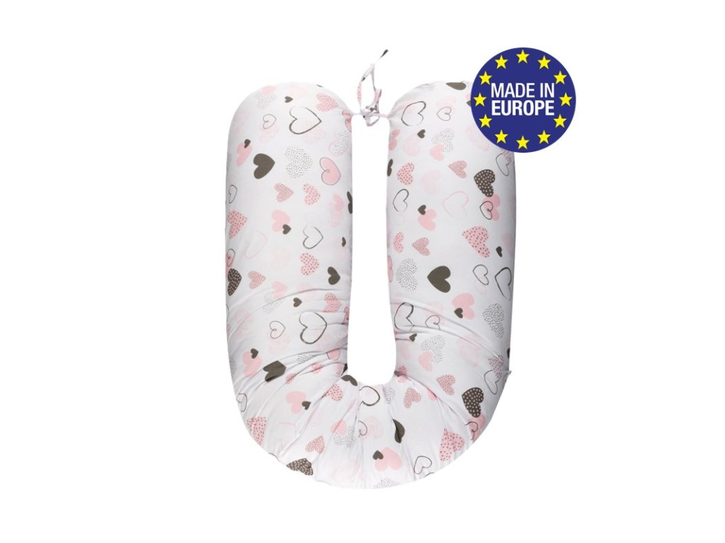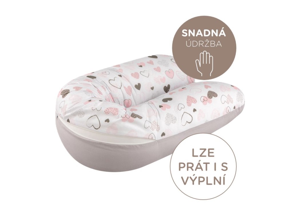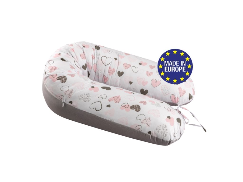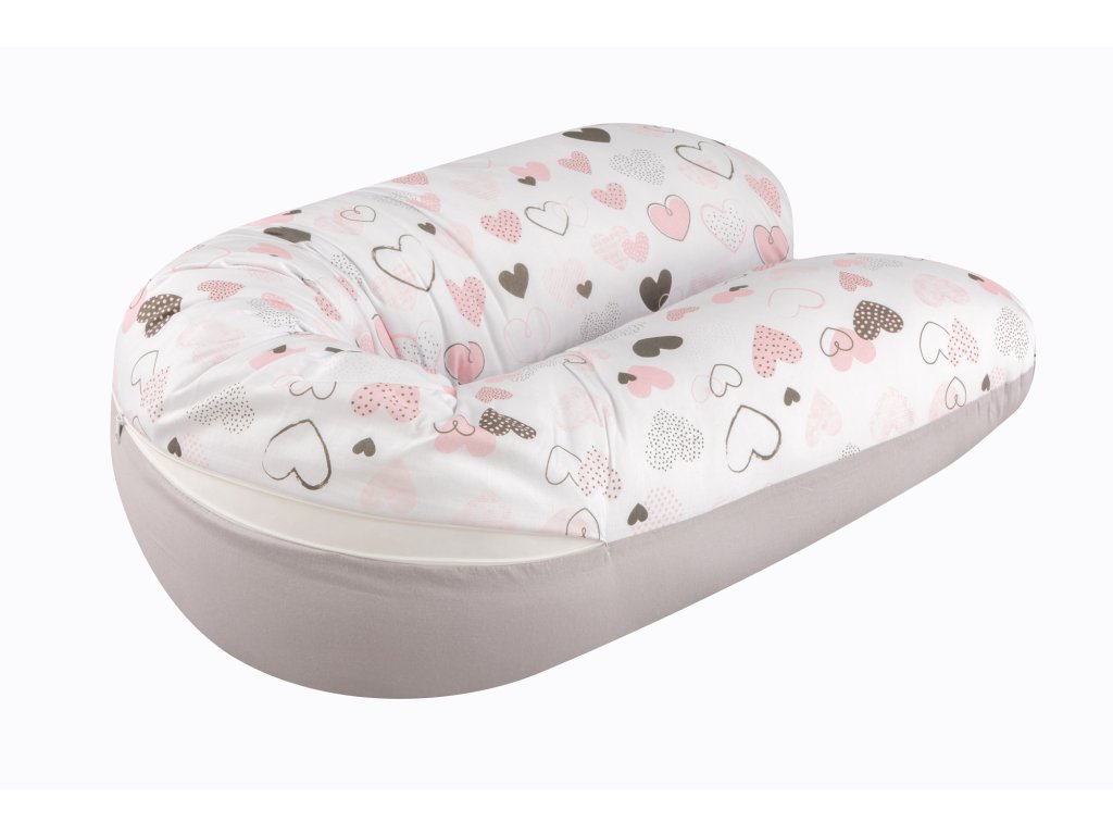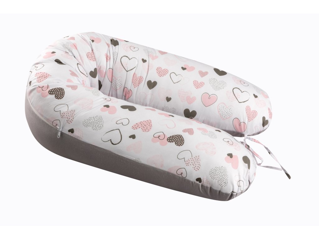 Bomimi ADOS kojící polštář 150x30, SRDÍČKA růžová/šedá
