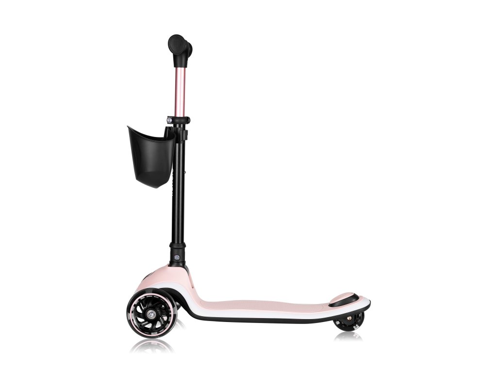 Ergonomický design je přizpůsoben proporcím těla dítěte, což mu usnadňuje udržovat správné držení těla. Pohodlné rukojeti jsou zajištěny proti sklouznutí rukojeti a omezovač otáčení (do 65°) zabraňuje příliš ostrým zatáčkám a chrání před převrácením.