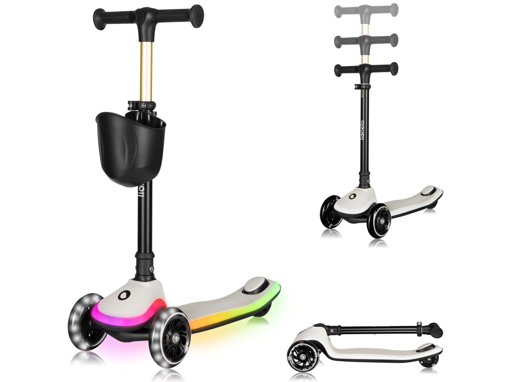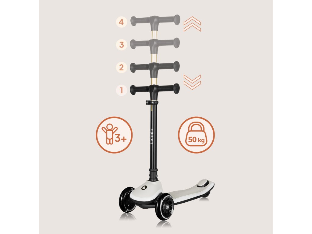 Dětská balanční tříkolová koloběžka pro děti Lionelo MEY skládací LED do 50 kg