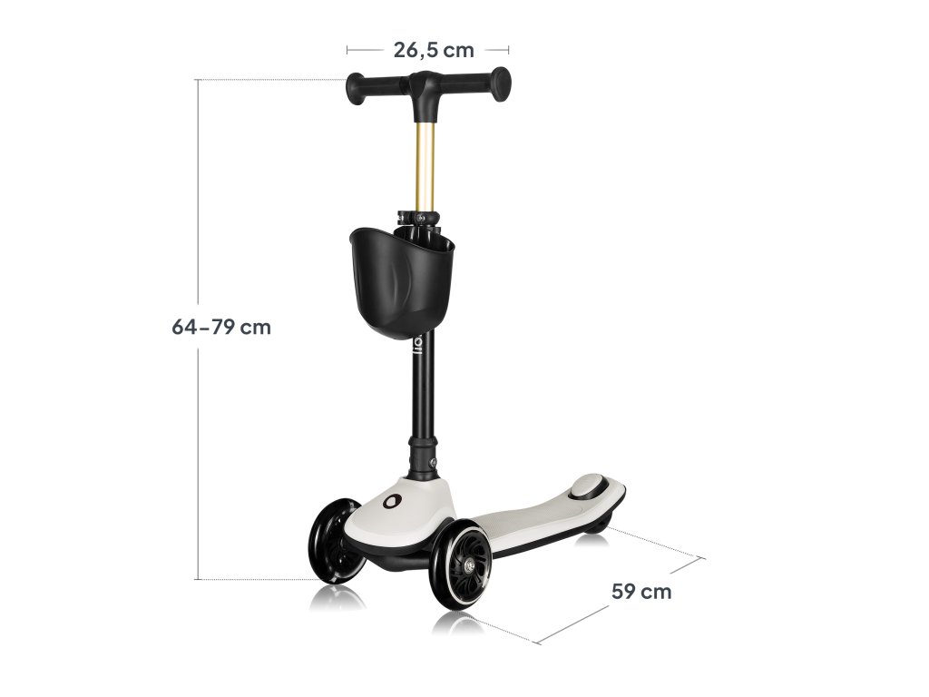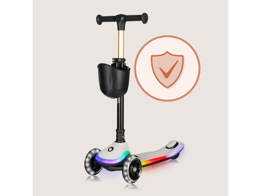 Lionelo Mey je bezpečná, stabilní balanční koloběžka s vícebarevným LED osvětlením, která působí jedinečným dojmem! Ideální pro začátek hry s vozidly, podněcuje dítě k aktivitě a učí jej motorické koordinaci. A vypadá to extra, trochu jako z vesmíru – světla mají desítky možných provozních režimů, mohou blikat, plynule se měnit na různé barvy nebo trvale svítit modrou, žlutou, červenou… Bude se líbit vašemu dítěti i vám!