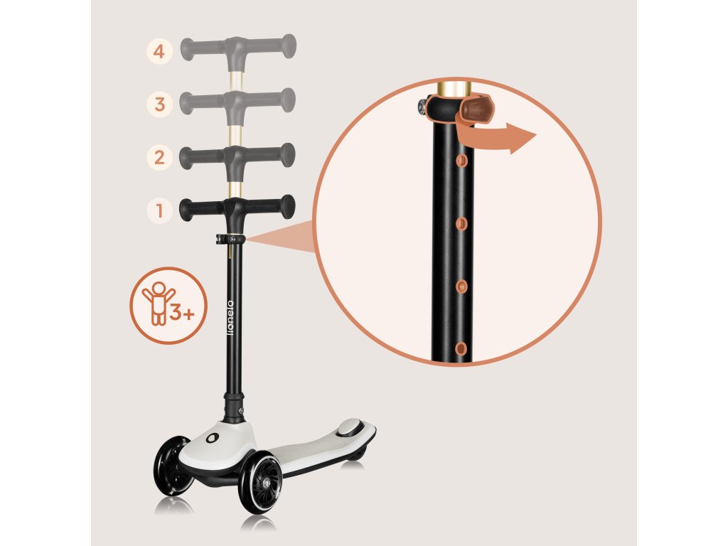 Je vhodná již pro 3leté děti a mohou ji používat mnohem větší a starší děti! To díky vysoké nosnosti až do 50 kg a 4-polohové nastavitelným řidítkům, kterou výšku můžete snadno přizpůsobit aktuální výšce vašeho dítěte.