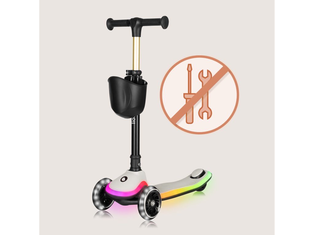 Nic není třeba šroubovat, spojovat ani montovat! Je to fantastický nápad na dárek, protože po rozbalení koloběžky a jejím vyjmutí z krabice se dítě může pustit přímo do hry!