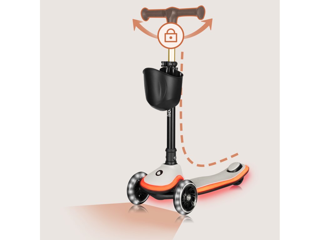 Odpojte klip, nastavte řídítka do jedné ze 4 dostupných úrovní kliknutím a klip upevněte. A je to! Kombinace „kliknutí” a klipu poskytuje dvojí ochranu proti náhodné změně výšky dítětem.