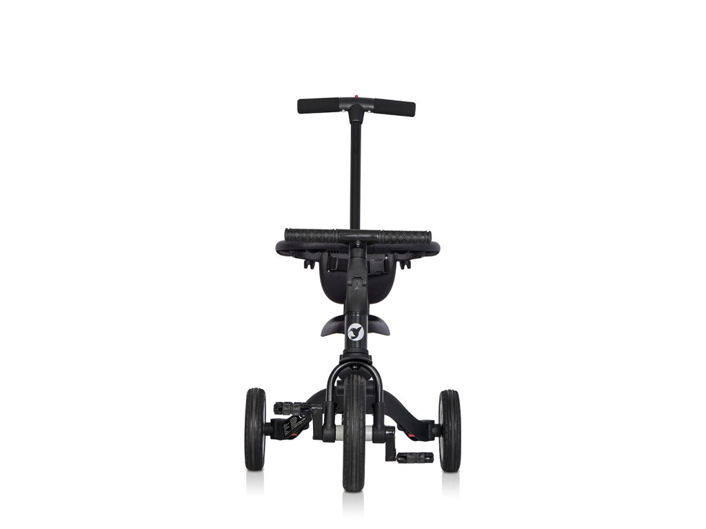 Kočárek (1-2 roky): Nahrazuje kočárek s opěrkou a bezpečnostními pásy. Přední pedály slouží jako podnožka, zatímco rodič pohodlně ovládá výškově nastavitelnou tyč.