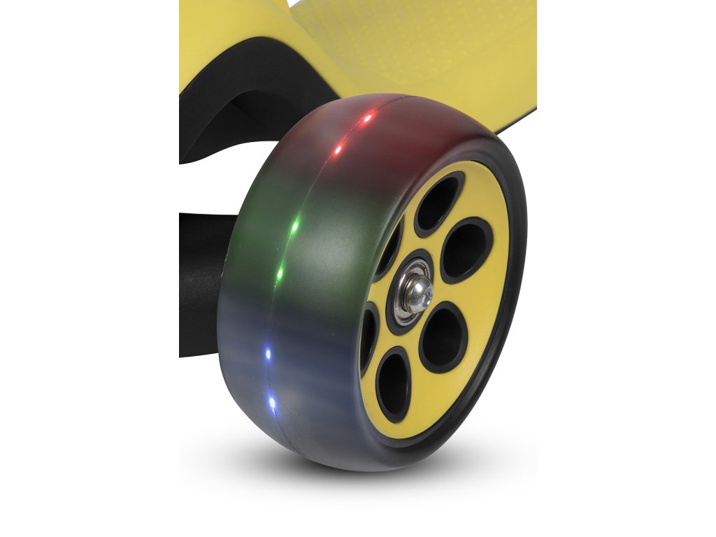 - Stabilní kola: Široká ložisková kola z elastomeru polyuretanu se neodchylují pod váhou dítěte a jsou velmi odolná proti opotřebení.