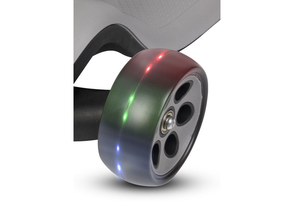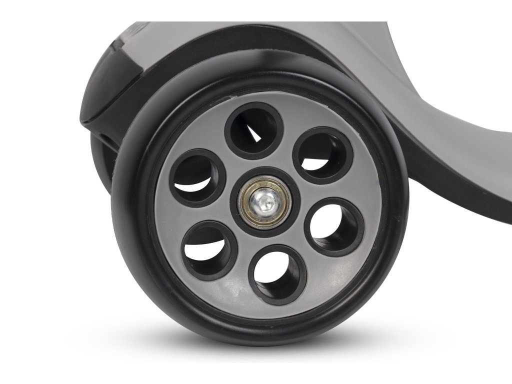 - Stabilní kola: Široká ložisková kola z elastomeru polyuretanu se neodchylují pod váhou dítěte a jsou velmi odolná proti opotřebení.
