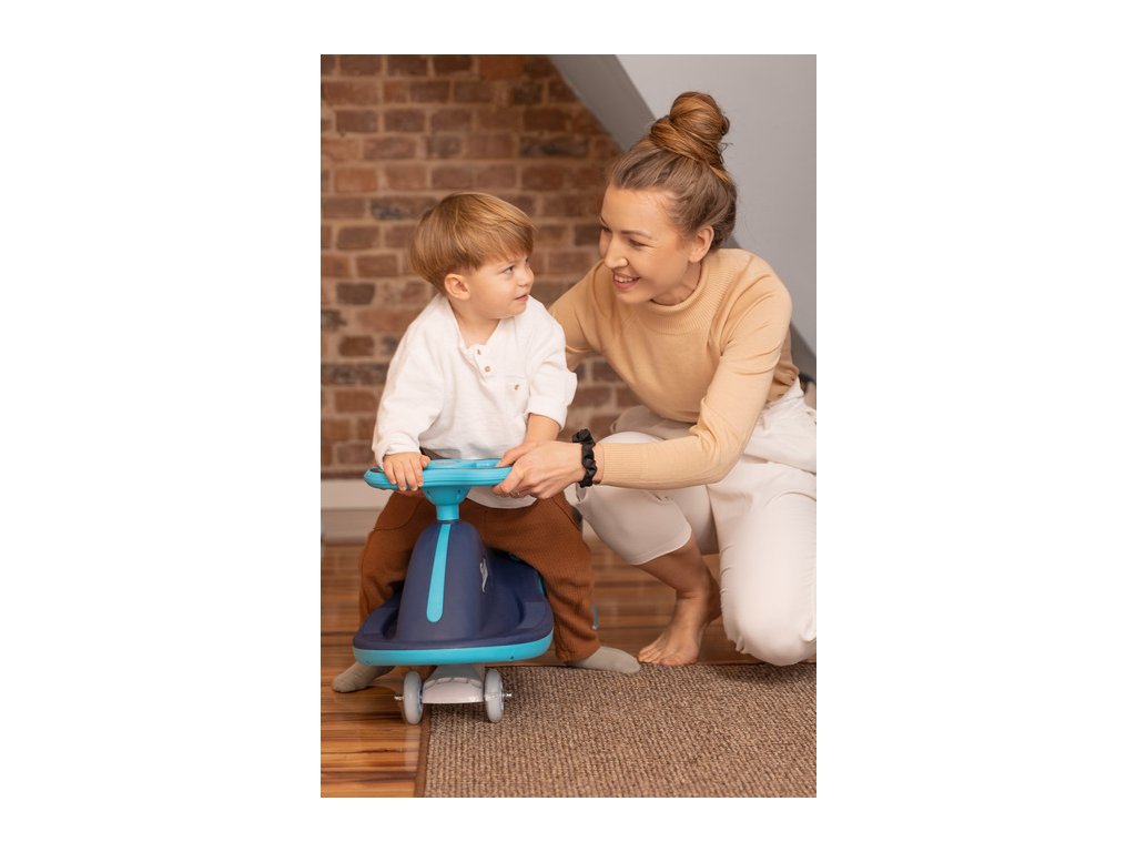 Pohyb volantem vyžaduje koordinaci obou rukou a udržování rovnováhy těla, což přirozeně podporuje fyzický a mentální vývoj dítěte. Jízda vpřed i vzad přidává další rozměr zábavy a učení.
