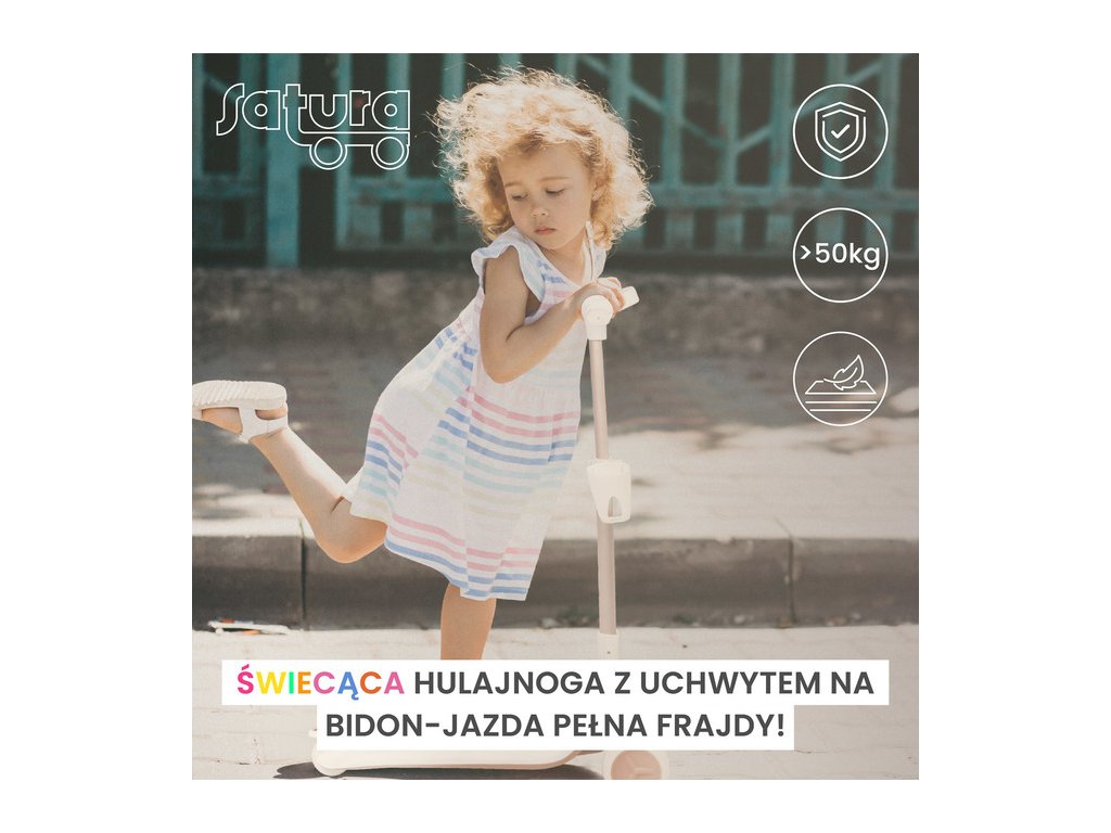 Koloběžka SATURA BALANCETato jedinečná koloběžka je perfektní volbou pro děti starší 3 let, které milují aktivní život a zábavu venku. Maximální nosnost je 50 kg. Výrazná LED světla na desce a kolech se během jízdy automaticky rozsvítí a vytvoří barevné osvětlení. Díky inovativní technologii fungují bez potřeby baterií, což zajišťuje nejen vzrušující, ale také bezpečnou hru! |