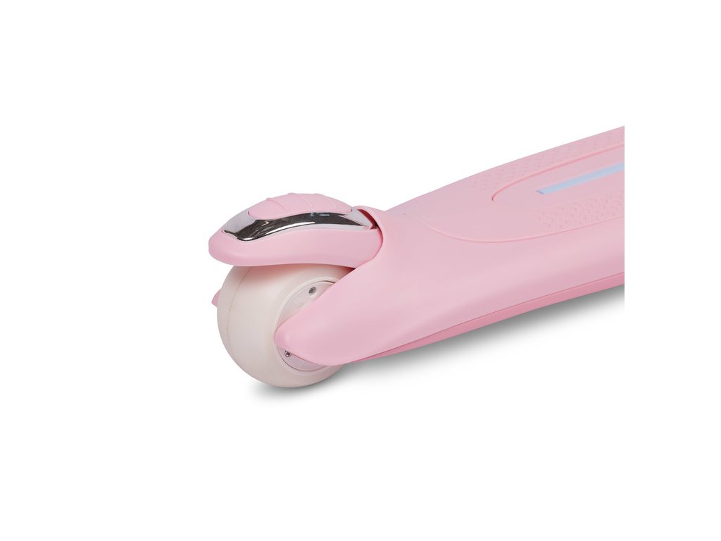 Největším lákadlem této koloběžky jsou výrazná LED světla na plošině i kolech, která se během jízdy automaticky rozsvítí a vytvoří kouzelné barevné efekty. Díky inovatívní technologii fungují zcela bez potřeby baterií – světla se aktivují pohybem, což zajišťuje nejen úžasný vizuální zážitek, ale také ekologický a bezpečný způsob zábavy.