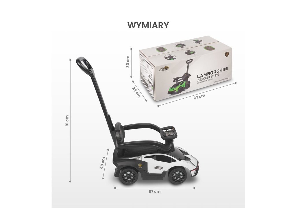Lamborghini Essenza není jen běžné odrážedlo – je to oficiálně licencovaná replika automobilové legendy. Vaše dítě okamžitě pocítí atmosféru skutečného supersportu díky: