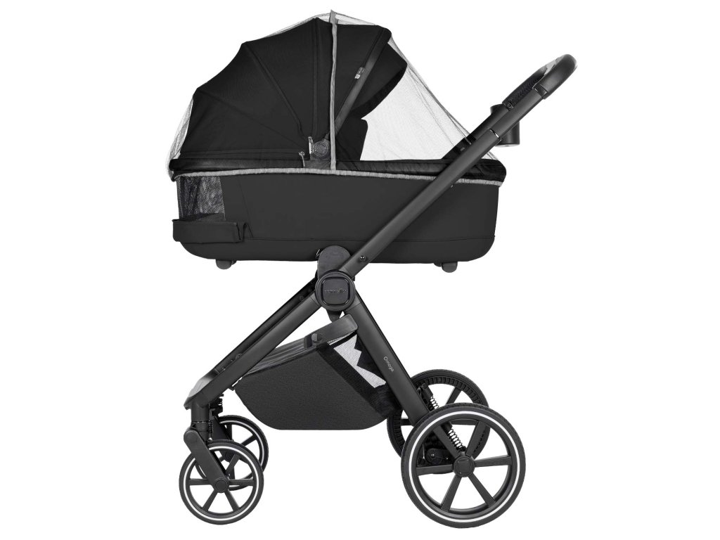 Univerzální modulární kočárek prémiové třídy se špičkovými technickými vlastnostmi, kompletní sadou příslušenství a nastavitelným dvoustupňovým systémem odpružení. Prostorná celoroční korbička je určena pro děti od narození do 6 měsíců s hmotností do 9 kg. Pro větší pohodlí je dno korbičky vyrobeno z měkčího materiálu. Skořepina korbičky je vyrobena z husté, vícevrstvé látky s voděodolnými vlastnostmi a ochranou proti slunci SPF 50. Stříška je vybavena odnímatelnou sluneční clonou, přídavnou sekcí a větracím okénkem na zip. Větrání v korbičce je zajištěno dvěma síťovanými okénky. Klapky mají magnetické zámky polohy, které umožňují nastavení průtoku vzduchu. V chladnějších dnech lze okénka zcela zavřít. Sada obsahuje univerzální moskytiéru a pláštěnku. Speciální adaptéry umožňují vyšší polohu korbičky. Nastavení výšky rukojeti – teleskopické. Sedadlo lze namontovat po i proti směru jízdy. Opěradlo a opěrka nohou mají 3 polohy sklopení: vsedě, pololeže a vleže – nastavitelné nezávisle. Kočárek „roste“ s dítětem: stříška sedáku má nastavitelnou výšku (3 polohy) a aretuje se tlačítkem na zadní straně sedáku. Opěradlo je vyrobeno z odolného, hypoalergenního plastu a má ventilační funkci. Stříška obsahuje další část na zip, průzor a sluneční clonu. Sedák se kompaktně skládá spolu s rámem, bez ohledu na směr instalace. Rám je chráněn proti náhodnému složení a rozložení. Přední kola se otáčejí o 360° a mají automatickou aretaci pro jízdu v přímém směru, všechna kola jsou rychloupínací. Zadní náprava je vybavena nastavitelným dvoustupňovým odpružením. Přední tlumič nárazů absorbuje vibrace při nárazu do překážek nebo jízdě po nerovném povrchu. Obsah sady: * Elegantní a prostorná taška s úchyty na rám * návleky na nohy (na korbičku i sedačku) * moskytiéra * pláštěnka * držák na nápoje s logem * madlo (odnímatelné, otočné) Technické specifikace: Typ skládání: kniha Maximální nosnost: 22 kg Průměr kol: přední – 20 cm, zadní – 29 cm Hmotnost korbičky: 3,9 kg Hmotnost sedačky: 4,3 kg Nastavení výšky rukojeti: ano, teleskopické Hmotnost rámu s korbičkou: 12 kg Hmotnost rámu se sedačkou: 12,4 kgDoplňkové parametry