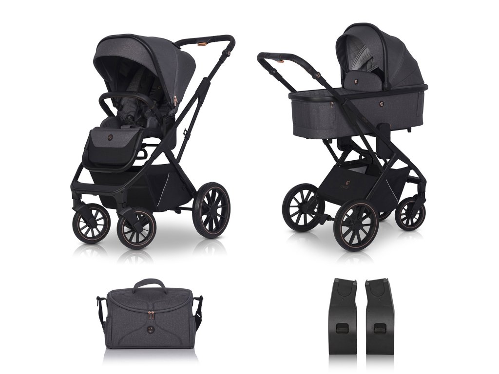 - Sada 2v1: Obsahuje sportovní kočárek, hlubokou vaničku, tašku a univerzální adaptéry pro autosedačky.