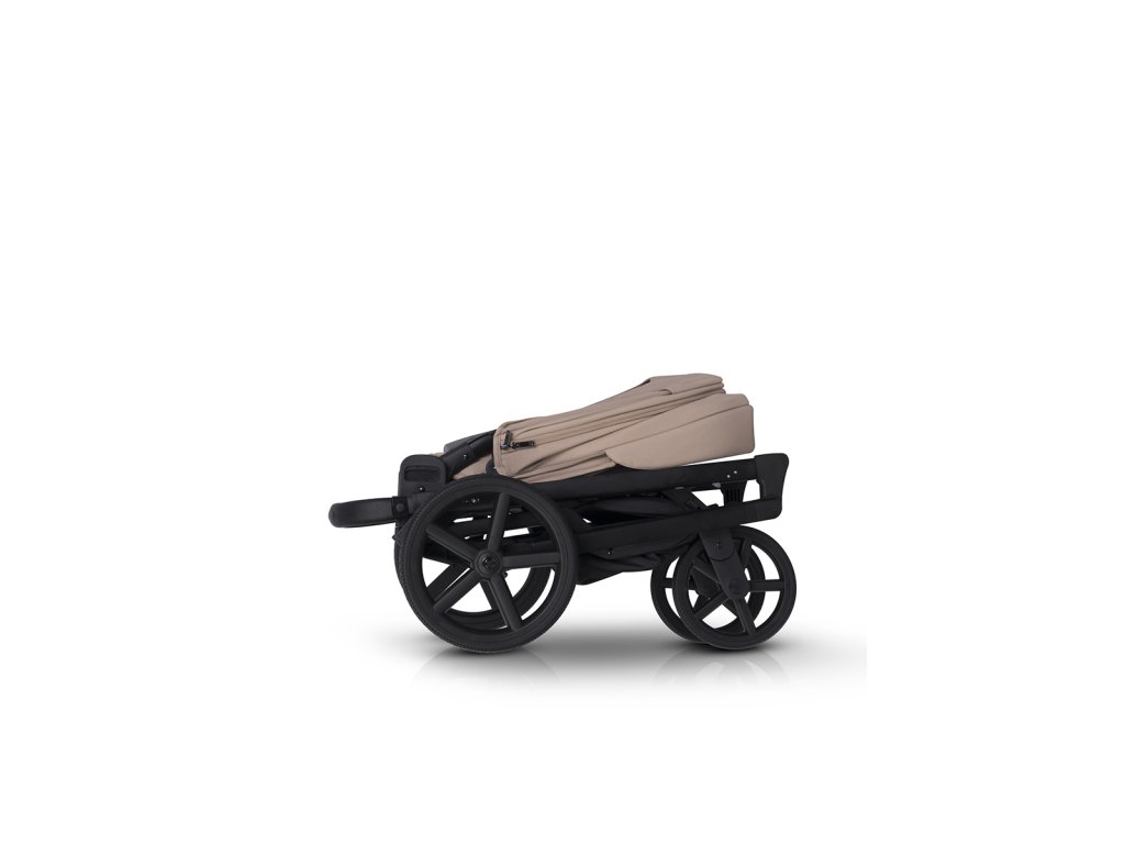Teleskopický skládací systém: Umožňuje snadné skládání jednou rukou, a to i se sedadlem namontovaným v obou směrech. Po složení kočárek stojí na všech kolech, což zaručuje čistotu a jednoduchou manipulaci.