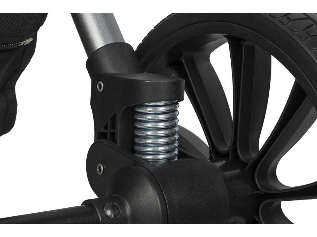 - Vynikající jízdní vlastnosti: Velká gumová kola a kvalitní odpružení zajišťují plynulou jízdu jak po městských chodnících, tak i v náročnějším terénu.