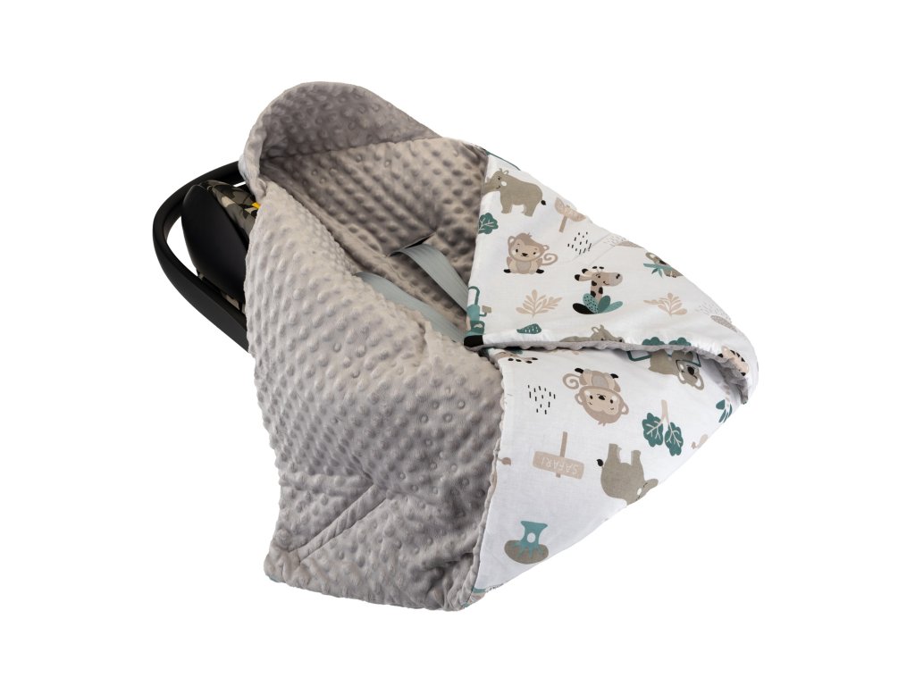 Bomimi Zavinovací deka do autosedačky minky pojízdná zoo, šedá xy