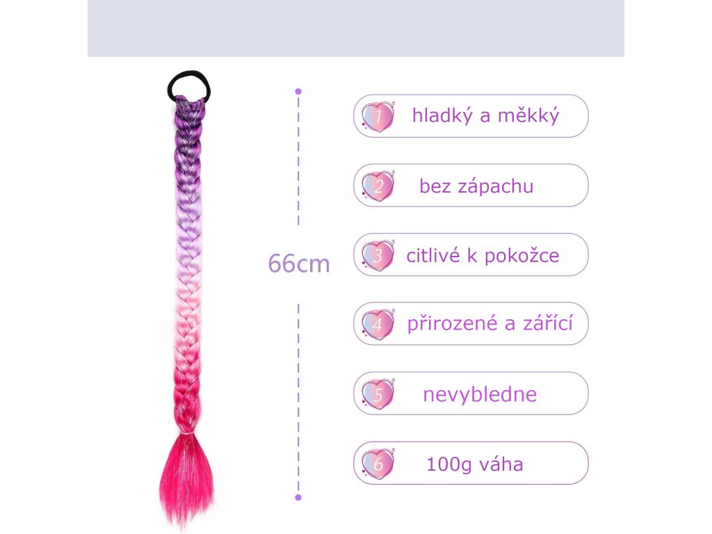 Dlouhý copánek s gumičkou Fairy Extension je okouzlující vlasový doplněk, který okamžitě promění každý účes v pohádkový vzhled. S délkou 60 cm nabízí výrazný efekt prodloužených vlasů, ideální pro speciální příležitosti, dětské oslavy, karnevaly nebo každodenní hraní na vílu či princeznu.