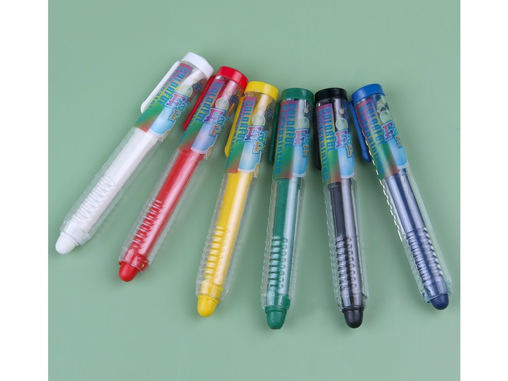 Dětská sada barev na obličej v tužce obsahuje 6 základních barev – bílou, žlutou, červenou, zelenou, modrou a černou. Praktické provedení v podobě výsuvných tužek zajišťuje snadnou a čistou aplikaci přímo na obličej nebo tělo, bez potřeby štětců či houbiček.