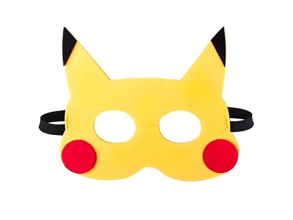 Součástí převleku je také žlutá maska s černýma ouškama, inspirovaná přímo Pikachu. Maska je vyrobena z měkké plsti a drží pomocí elastické gumičky, takže perfektně sedí a netlačí ani při delším nošení.
