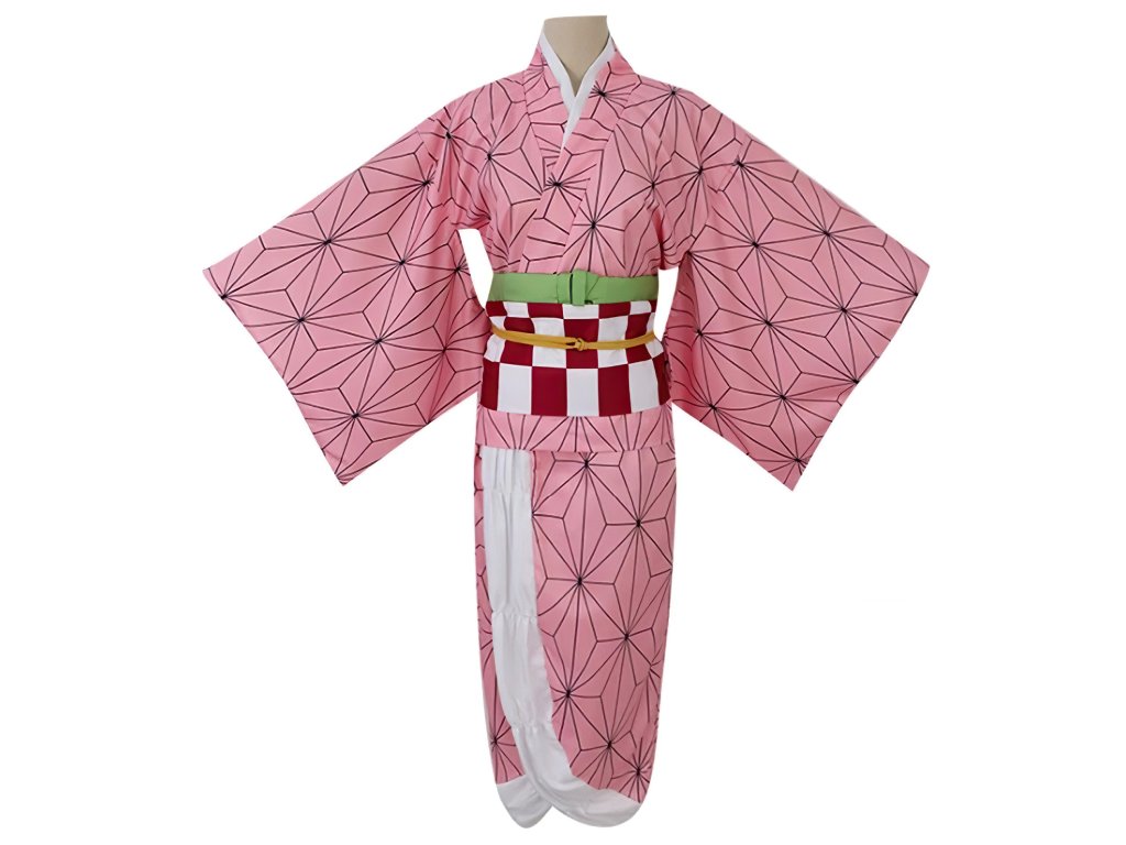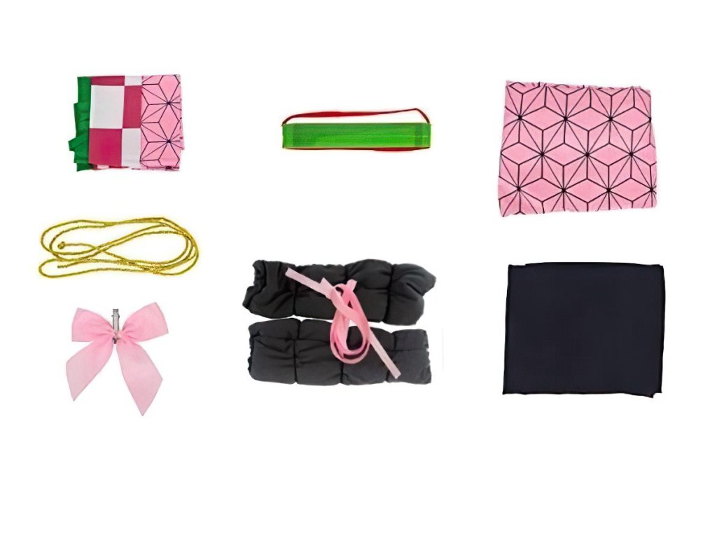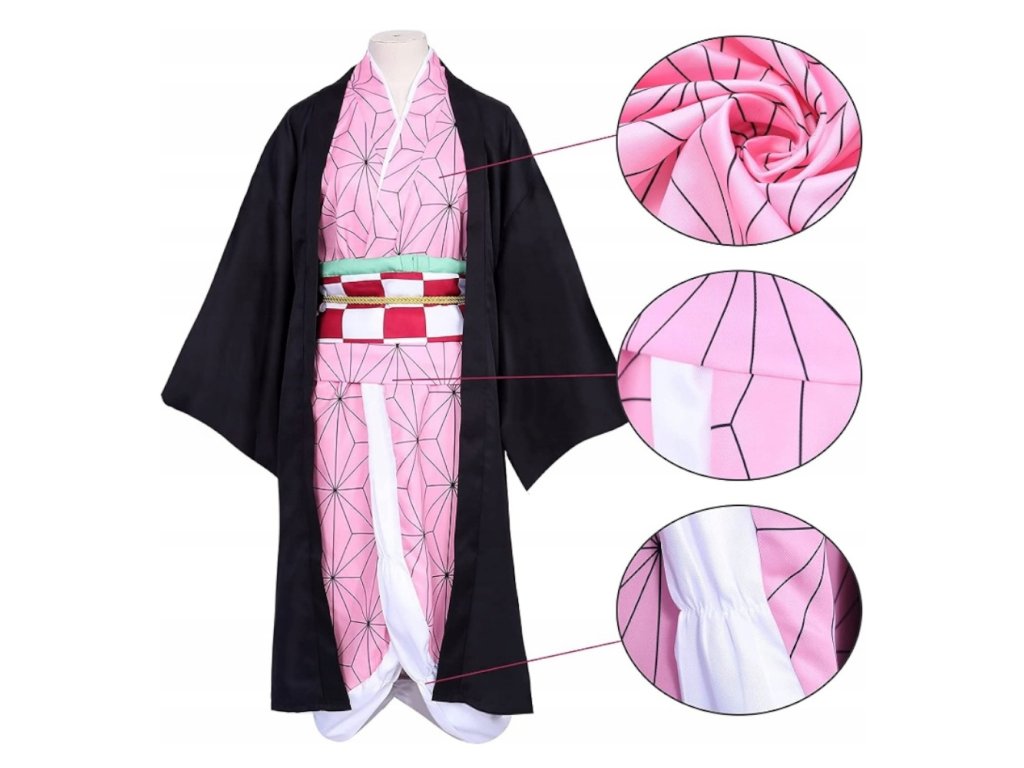 Kostým obsahuje kimono v růžové barvě s geometrickým vzorem, které je charakteristickým prvkem Nezuko a dodává kostýmu tradiční vzhled. Černý plášť s dlouhými rukávy, který doplňuje celý outfit a zajišťuje věrný dojem z postavy. Dále je součástí ozdobný pás a další doplňky, včetně roubíku na ústa, které jsou pro Nezuko ikonické, protože jí umožňují kontrolovat její démonickou povahu.