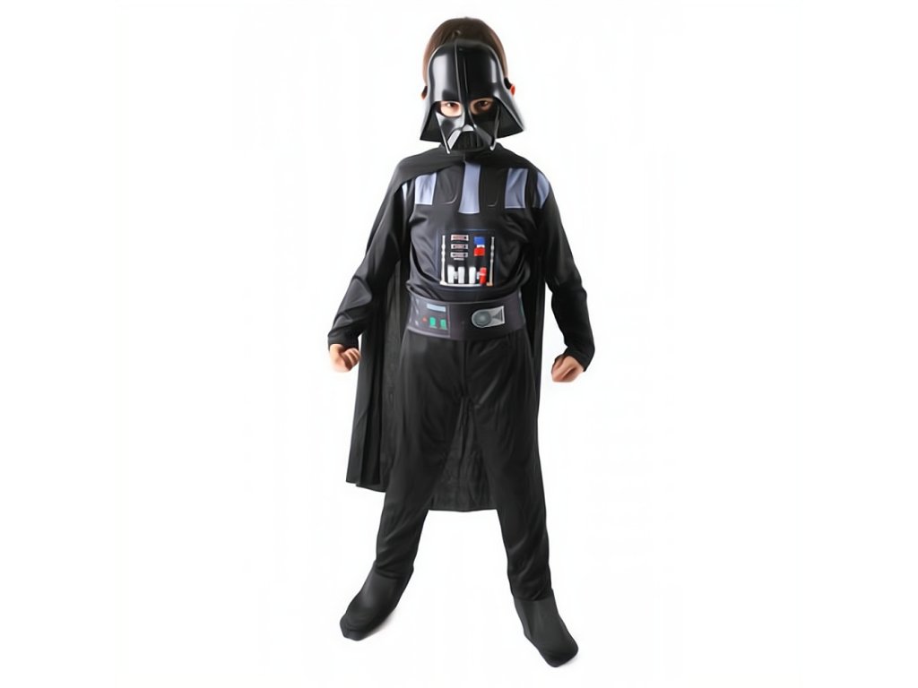 Kostým se skládá z několika detailně propracovaných částí, které zajišťují autentický vzhled. Hlavní částí je černý overal, který je pohodlný a umožňuje volný pohyb. Tento overal je doplněn pásem, který má na sobě vyobrazené ovládací prvky Darth Vaderova ikonického životního podpůrného systému. Plášť, který se volně splývá přes ramena, dodává kostýmu dramatický vzhled a zdůrazňuje temnou a hrozivou přítomnost tohoto sithského lorda. Součástí kostýmu je také detailní plastová maska, která věrně zobrazuje strašidelnou přilbu Darth Vadera. Maska zakrývá celou hlavu a obličej, čímž dokonale doplňuje vzhled postavy a umožňuje dítěti plně se vžít do role tohoto temného rytíře. Celkový design kostýmu je zaměřen na to, aby co nejvěrněji napodobil vzhled postavy z filmů, díky tomu je kostým vhodnou volbu pro malé fanoušky série Star Wars.