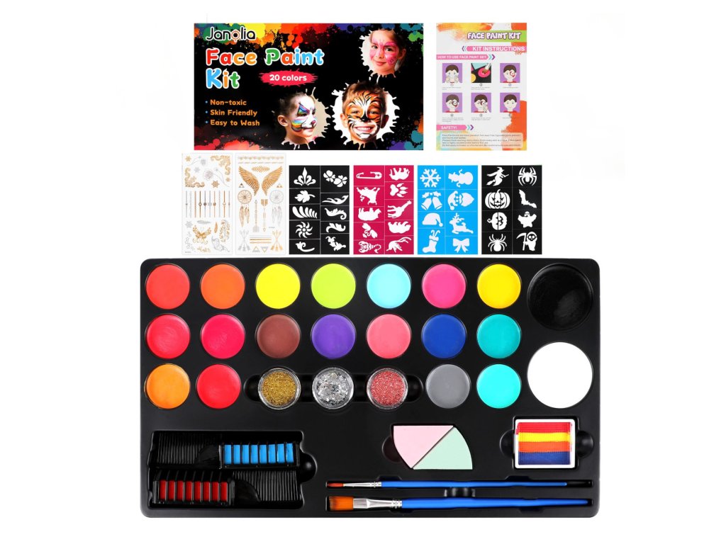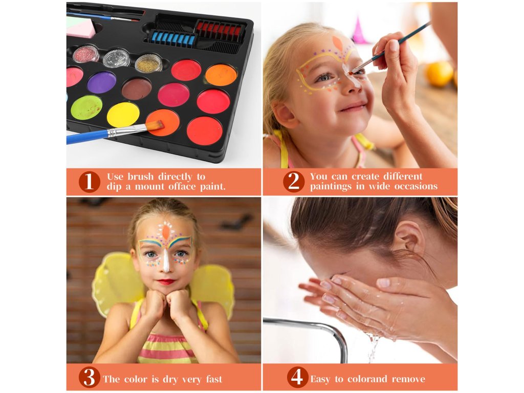 Luxusní sada barev na obličej a vlasy obsahuje vše, co potřebujete pro kreativní líčení na párty, karneval, Halloween nebo dětské oslavy.