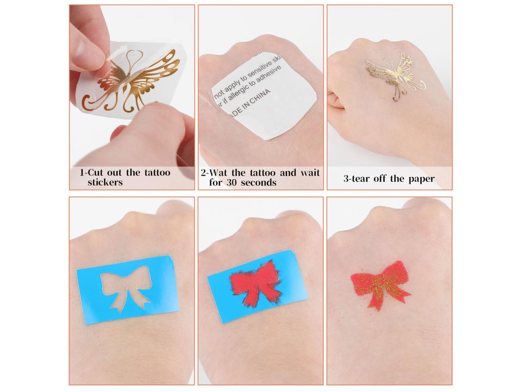 Součástí sady jsou také šablony s motivy zvířat, květin, fantasy postav a dalších tvarů, které usnadní tvorbu dokonalých maleb i začátečníkům. Třpytky dodají líčení slavnostní vzhled a křídy na vlasy umožní doplnit kostým o barevný účes.