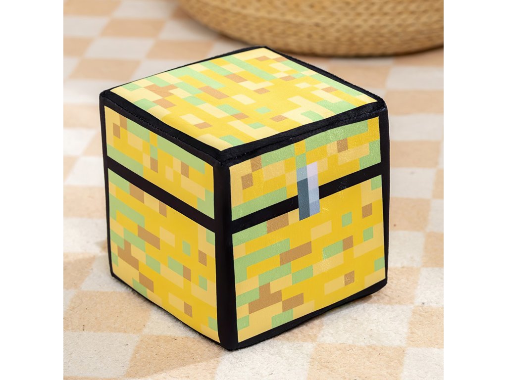 Se svým pixelovým vzhledem, sytě žlutými a zlatavými odstíny a černým lemováním věrně napodobuje vzhled herního úložiště pokladů a surovin. Truhla je základní úložný blok v Minecraftu, který slouží k ukládání a organizaci předmětů. Bez ní by hráč neměl kde skladovat materiál jako suroviny, nástroje, jídlo a další cennosti. Truhla je velmi důležitý blok pro správu zásob. Ať už jsi nováček nebo zkušený stavitel, truhla ti bude věrným parťákem od začátku až do endu.