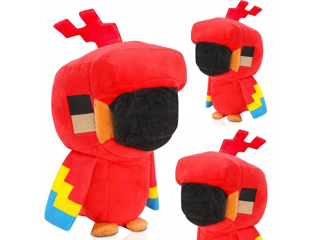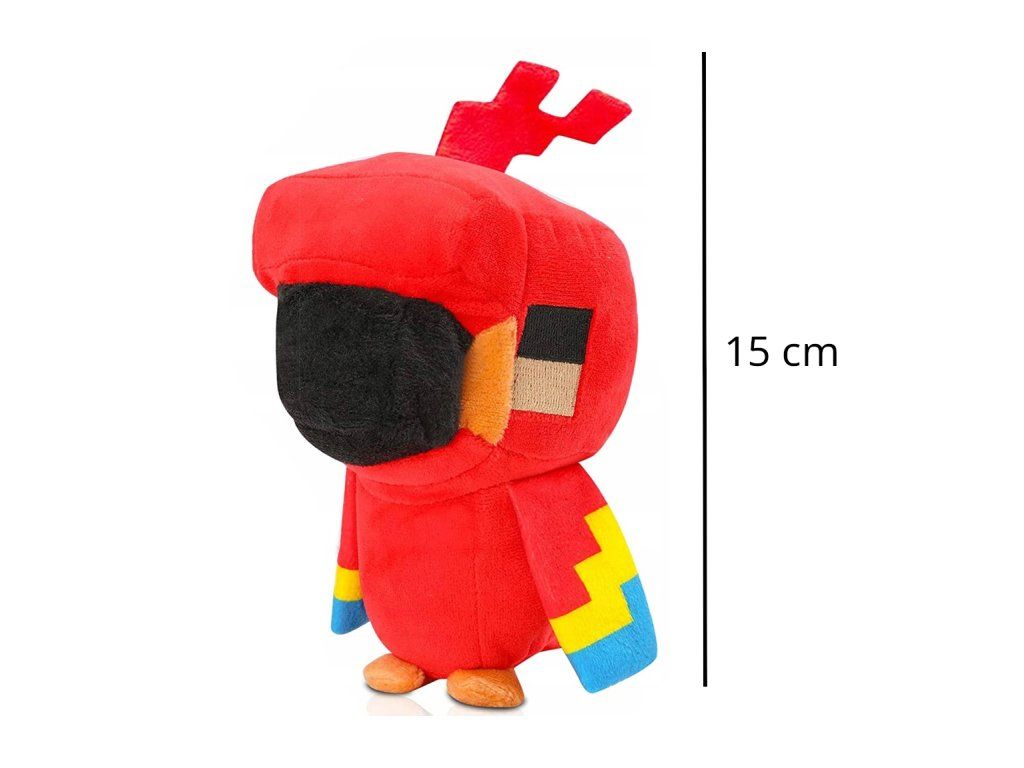 Minecraft Papoušek je měkkou hračkou pro malé i větší fanoušky populární stavebnicové hry. Postavička papouška je věrně zpracována podle své pixelové předlohy ze hry s charakteristickým červeným tělem, modro-žlutými křídly a černým zobákem. Je ideálním cestovním společníkem, protože se snadno vejde do tašky či batohu. Plyšák je určen pro děti i dospělé fanoušky hry a slouží jako perfektní dárek nebo sběratelský kousek.