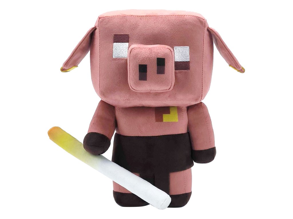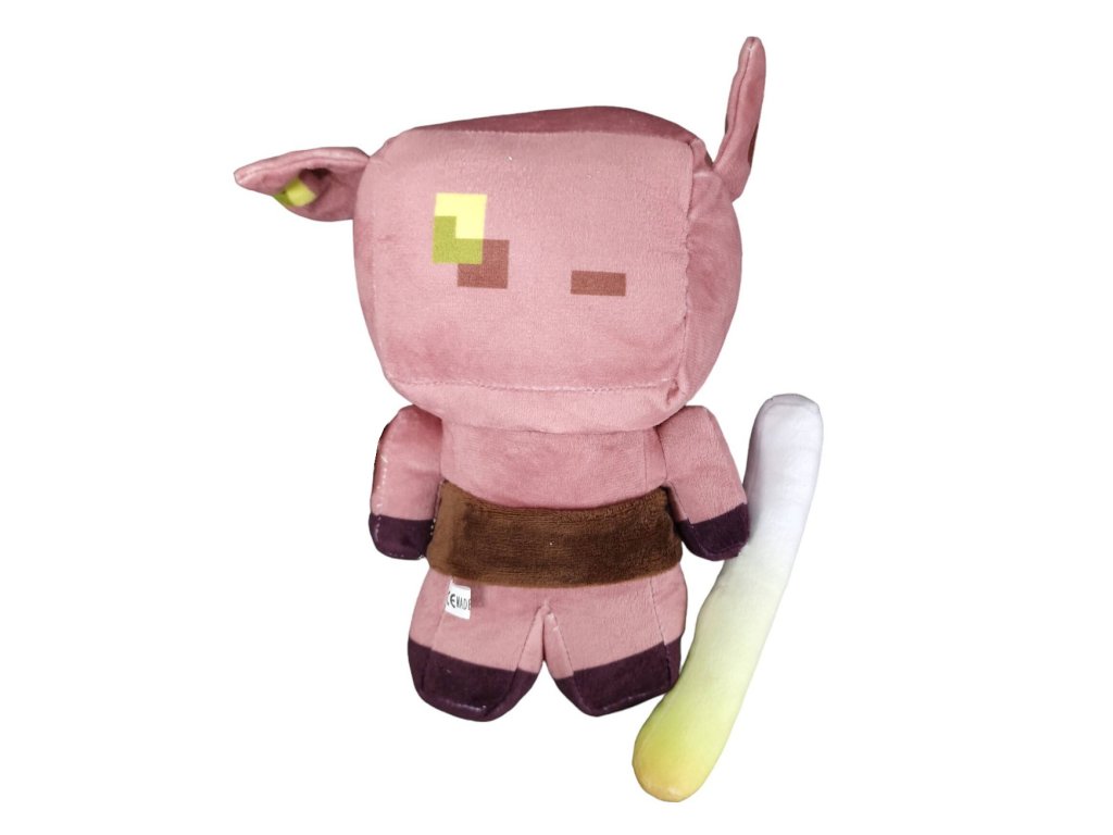 V Minecraftu Piglini často útočí na hráče, kteří nejsou oblečeni ve zlatém brnění, ale tato plyšová verze vypadá spíš jako přátelský společník.