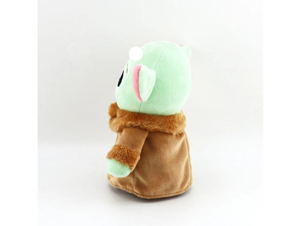 Díky své roztomilé tvářičce a velkým očím vypadá tato plyšová hračka věrně jako postava z populárního seriálu „Mandalorian“. Je oblečen do svého typického hnědého kabátku s kožešinovým límcem a manžetami, což podtrhuje jeho jedinečný vzhled. Růžové vnitřky uší a zelený odstín pleti dělají z této hračky autentickou verzi Baby Yody, kterou si oblíbí každý fanoušek.